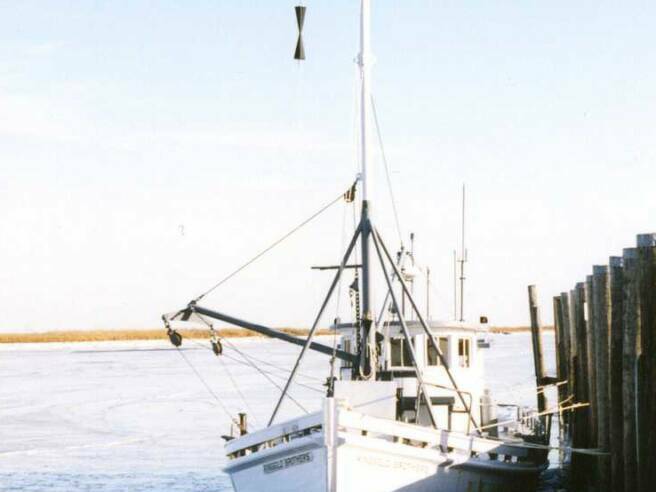 Photo taken of Oyster Buyboat from Delaware Fisheries, January 1994 by Drum Bay Photo Co. This photo is from a private collection of Chesapeake Bay Oyster Buyboats/Deckboats. To inquire on information of owner email this site at info@oysterbuyboats.com and reference photo index 234.