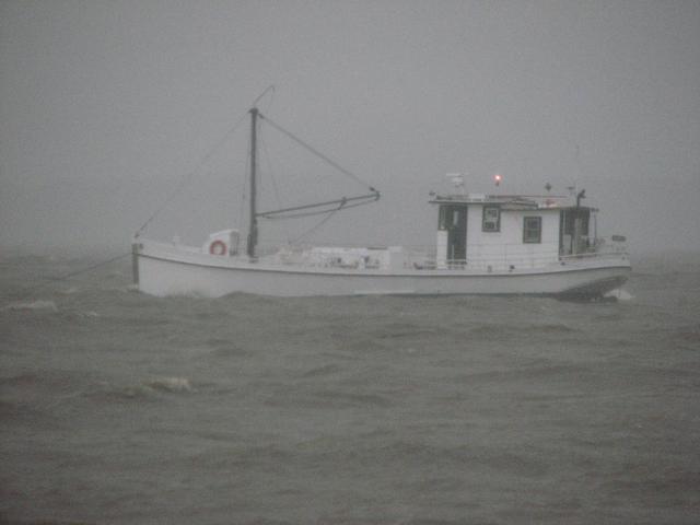 Just a few photos of PropWash at anchor off Tim's Rivershore Crabhouse in Dumfries, Virginia. Had 125 foot of anchor out, with water washing over the sides. It was an interesting evening watching the piers and restaurant get washed away. Had all lights on and anchor circle set, started dragging a little around 3am and put another 25 feet out. Had the restaurant pontoon as an escape boat if I needed it. Survived the night. Took over 4 hours working the anchor free to get underway.
